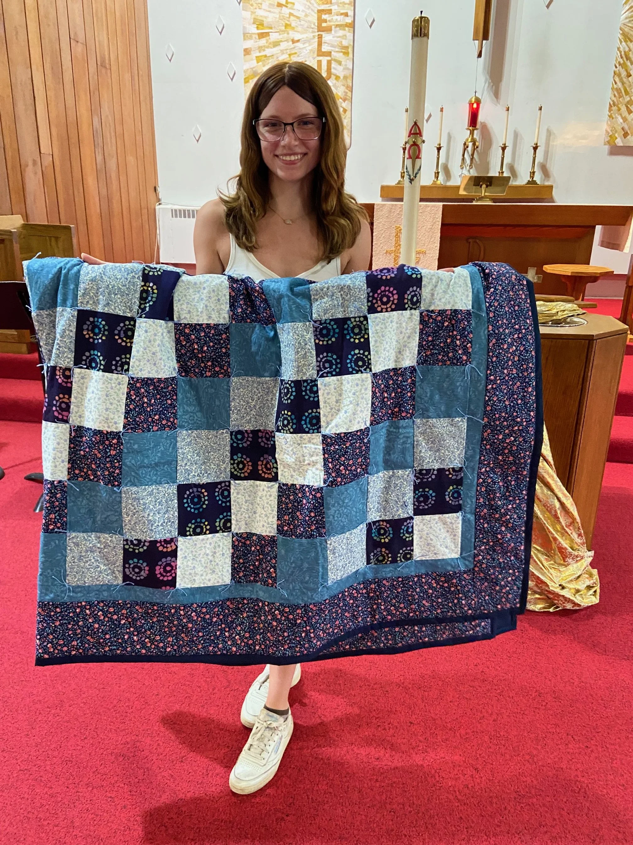 -Quilters - Meet weekly to cut, sew, and tie quilts for Graduates, Affinity House Women, Lutheran World Relief, also other missions, and to sell.